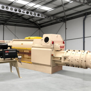 Depois este segue para um  laminador de refino 084FD, extrusora 0966 com boquilha de furos de 25 mm produzindo pellets de bentonita, que são colocadas a pátio para secagem até 15%.